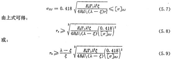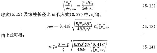 上式為根據(jù)內(nèi)齒圈與外滾子的許用接觸應(yīng)力所確定的激波器半徑的取值范圍。顯然激波器半徑Tb的取值應(yīng)同時滿足式(5.9)及式(5.14)的要求。