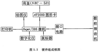 本系統(tǒng)是在一臺微型計算機super/386基礎(chǔ)上,增加一塊選進的圖形卡,一臺高分辨率顯示器,數(shù)控接口電路及相應(yīng)設(shè)備,組成了一個微機工作站,如圖5.2所示。