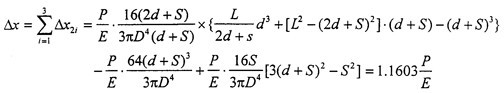 上式方程數(shù)為9個,而方程中未知量的總數(shù)為12個,故存在3個多余未知量。根據(jù)前述的變形協(xié)調(diào)條件,建立3個變形協(xié)調(diào)方程,作為機械受力分析的補充方程,利用高期消元法即可求解。