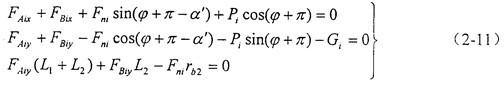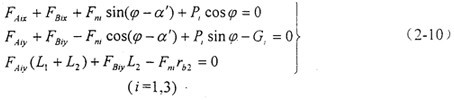 如果不計兩上支承軸重力的影響,則兩上支承軸O2B、O3C可看作二力桿,它的作用力如圖所示。不考慮制造誤差和載荷分配不均勻因素的影響,可以補充方程:F2=F3,則聯(lián)立求解得到:
