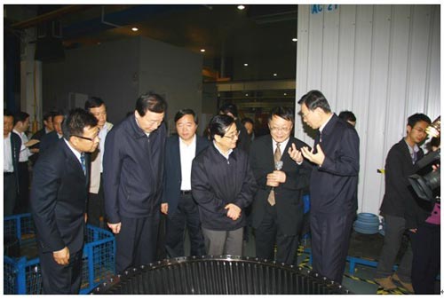 4月14日上午,在江蘇省委書記、省人大常委會主任羅志軍,江蘇省委副書記、省長李學(xué)勇及省市相關(guān)部門領(lǐng)導(dǎo)陪同下,由浙江省委書記、省人大常委會主任趙洪祝率領(lǐng)的浙江省黨政代表團來到南高齒風(fēng)電產(chǎn)業(yè)園參觀考察。集團公司董事長兼總經(jīng)理胡曰明等集團公司領(lǐng)導(dǎo)率員工熱情接待了來賓。代表團在參觀期間,詳細了解了南高齒生產(chǎn)研發(fā)、市場拓展、人才戰(zhàn)略和二次創(chuàng)業(yè)等各方面情況,對南高齒業(yè)已成為國際最大風(fēng)電裝備制造企業(yè)給予了高度評價,并充分肯定了南高齒為中國先進制造業(yè)和綠色能源產(chǎn)業(yè)發(fā)展所起到的積極貢獻,希望南高齒在2011年能有長足發(fā)展,二次創(chuàng)業(yè)工作越做越好。