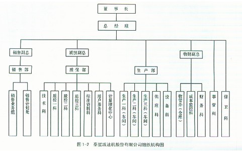 Ⅰ豐碩成果 坐落在中國蘇中平原的泰星減速機(jī)股份有限公司從1984年建廠,經(jīng)過20多年的拼搏發(fā)展,取得了驕人的業(yè)績,創(chuàng)造了許多令人難以置信的奇跡。 從當(dāng)初無資金、無設(shè)備、無產(chǎn)品、無市場的一窮二白、資不抵債的作坊式小廠發(fā)展成為現(xiàn)擁有固定資產(chǎn)3.8億元,員工2500多人,其中一程技術(shù)人員586人,占地68萬平方米的中國最大的減速機(jī)制造企業(yè),成為了中國減速機(jī)的生產(chǎn)基地,泰星減速機(jī)股份有限公司。根據(jù)2003年中國機(jī)械500強(qiáng)的排序,名列全國減速機(jī)行業(yè)榜首。 公司生產(chǎn)減速機(jī)不僅產(chǎn)量最高,銷量也最大。2004年,公司的銷售收入為5.5億元,主要產(chǎn)品的市場占有率高達(dá)25%,已經(jīng)連續(xù)11年名列全國同行首位。 20年前公司為社會創(chuàng)造了33億4千多萬元的財富,向國家交納了近4億元的稅金。 公司的產(chǎn)品遍布全國各地,并已走向德國、日本、美國等機(jī)械強(qiáng)國,國家的重點工程項目,從三峽水利工程,江陰長江大橋建設(shè)工程,黃河小浪底工程,葛洲壩工程,西氣東輸工程到南水北調(diào)工程等都在使用泰星的產(chǎn)品。 泰星減速機(jī)股份有限公司組織機(jī)構(gòu)圖見圖1-2。在公司目前的2500多名員工中,有50%為當(dāng)?shù)剞r(nóng)民,大專以上學(xué)歷的僅占20%,其余的皆為初、高中以下學(xué)歷,但他們卻生產(chǎn)出了國內(nèi)領(lǐng)先、國際一流的產(chǎn)品。 泰星牌減速機(jī)成為中國減速機(jī)行業(yè)惟一的國家“121”重點保護(hù)名優(yōu)產(chǎn)品。