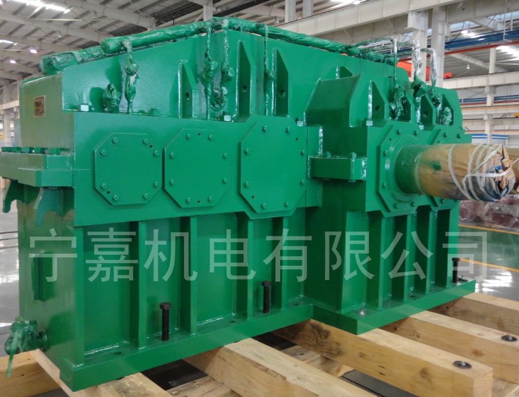此次交付的XSM270是為密閉式煉膠機(jī)配套的主齒輪箱,是高精度重載荷硬齒面齒輪齒輪箱,是寧嘉公司成熟化系列產(chǎn)品。該主齒輪箱采用平行圓柱齒輪減速的傳動(dòng)形式。輸入軸通過聯(lián)軸器與電機(jī)軸相聯(lián),由電機(jī)驅(qū)動(dòng),經(jīng)過齒輪減速和兩輸出軸之間齒輪的減速與功率分流,再通過聯(lián)軸器把動(dòng)力傳遞給密煉機(jī)轉(zhuǎn)子軸,從而帶動(dòng)密煉機(jī)轉(zhuǎn)子進(jìn)行煉膠。