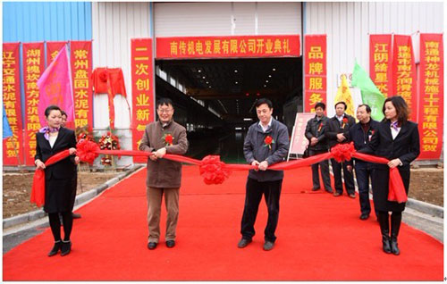 中國(guó)傳動(dòng)董事會(huì)主席胡曰明先生(左二)、南傳機(jī)電董事長(zhǎng)陸遜先生(左三)為南傳機(jī)電開業(yè)剪彩