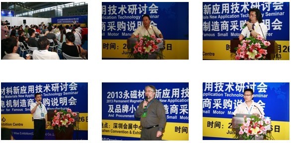 6月26日下午,2013品牌小電機(jī)企業(yè)采購(gòu)說明會(huì)在深圳會(huì)展中心8號(hào)館舉行。深圳拓邦股份有限公司電機(jī)事業(yè)部品質(zhì)經(jīng)理田慶生先生介紹了節(jié)能無刷及空心杯電機(jī)的發(fā)展趨勢(shì)和采購(gòu)需求;麥提斯儀器負(fù)責(zé)人呂克.范.簿克斯達(dá)爾博士深入介紹了最新一代永磁質(zhì)量控制技術(shù);徐州市嘉迪汽車電器有限公司總工程師劉洪祥先生對(duì)電機(jī)銅導(dǎo)線專用熔焊機(jī)做了技術(shù)介紹。當(dāng)晚,全國(guó)非晶材料學(xué)術(shù)委員會(huì)秘書長(zhǎng)張華先生、亞洲釹鐵硼協(xié)會(huì)秘書長(zhǎng)兼寧波億邁克思集團(tuán)董事長(zhǎng)鄭森先生、中國(guó)電子材料行業(yè)協(xié)會(huì)磁性材料分會(huì)副秘書長(zhǎng)翁興園先生、廣東省家用電器行業(yè)協(xié)會(huì)會(huì)長(zhǎng)張小明先生、廣東省家用電器行業(yè)協(xié)會(huì)副秘書長(zhǎng)黃丹先生出席了2013品牌小電機(jī)供需雙方聯(lián)誼晚宴并致辭,在短短一個(gè)小時(shí)的晚宴上與來自全國(guó)各地的小電機(jī)制造商、供應(yīng)商廣交朋友,尋求合作!
