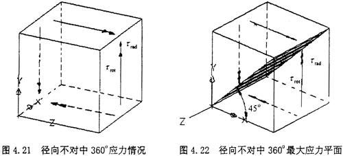 由圖示可知,此時單元體的受力其實是屬于純剪切狀態(tài),只是此時的剪切應力為τrad與τrot的疊加。此時剪應力τrad與τrot的方向相反。所在最大應力有所抵消。
