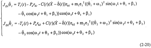 取(2-2)式,代入式(2-13)可得單級齒輪系統(tǒng)帶偏心質(zhì)量的振動微分方程: