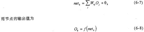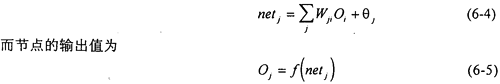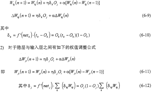 對于圖6-1所示的網(wǎng)絡(luò),其訓(xùn)練學(xué)習(xí)的過程包括:1)網(wǎng)絡(luò)內(nèi)部的前向計算;2)誤差的反向傳播。其主要目的就是通過逐步調(diào)整網(wǎng)絡(luò)的內(nèi)部連接權(quán)值,使網(wǎng)絡(luò)的均方誤差達(dá)到我們的要求。網(wǎng)絡(luò)內(nèi)部的連接權(quán)值的調(diào)整,都是采用推廣的δ規(guī)則來完成的。