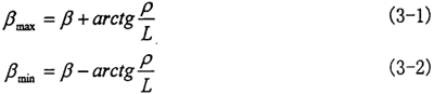 由于在轉(zhuǎn)動(dòng)的過程中,三叉桿交點(diǎn)作旋轉(zhuǎn)運(yùn)動(dòng),因此會(huì)導(dǎo)致輸入軸與輸出軸之間的夾角發(fā)生變化,其變化范圍為βmin~βmax,當(dāng)O點(diǎn)(見圖3-5)處于輸入軸與輸出軸轉(zhuǎn)動(dòng)錐中心線所構(gòu)成平面的兩個(gè)極限位置時(shí),偏轉(zhuǎn)角達(dá)到兩極值: