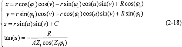 右齒面齒廓方程同左齒面方程,其中接觸角β取負(fù)值。