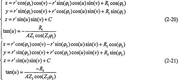 式中 u、v——球面上參數(shù)(rad);