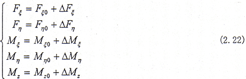 △Fξ,△Fη,△Mξ,△Mη,△Mz分別為相應(yīng)的動(dòng)態(tài)力和動(dòng)態(tài)力偶矩。