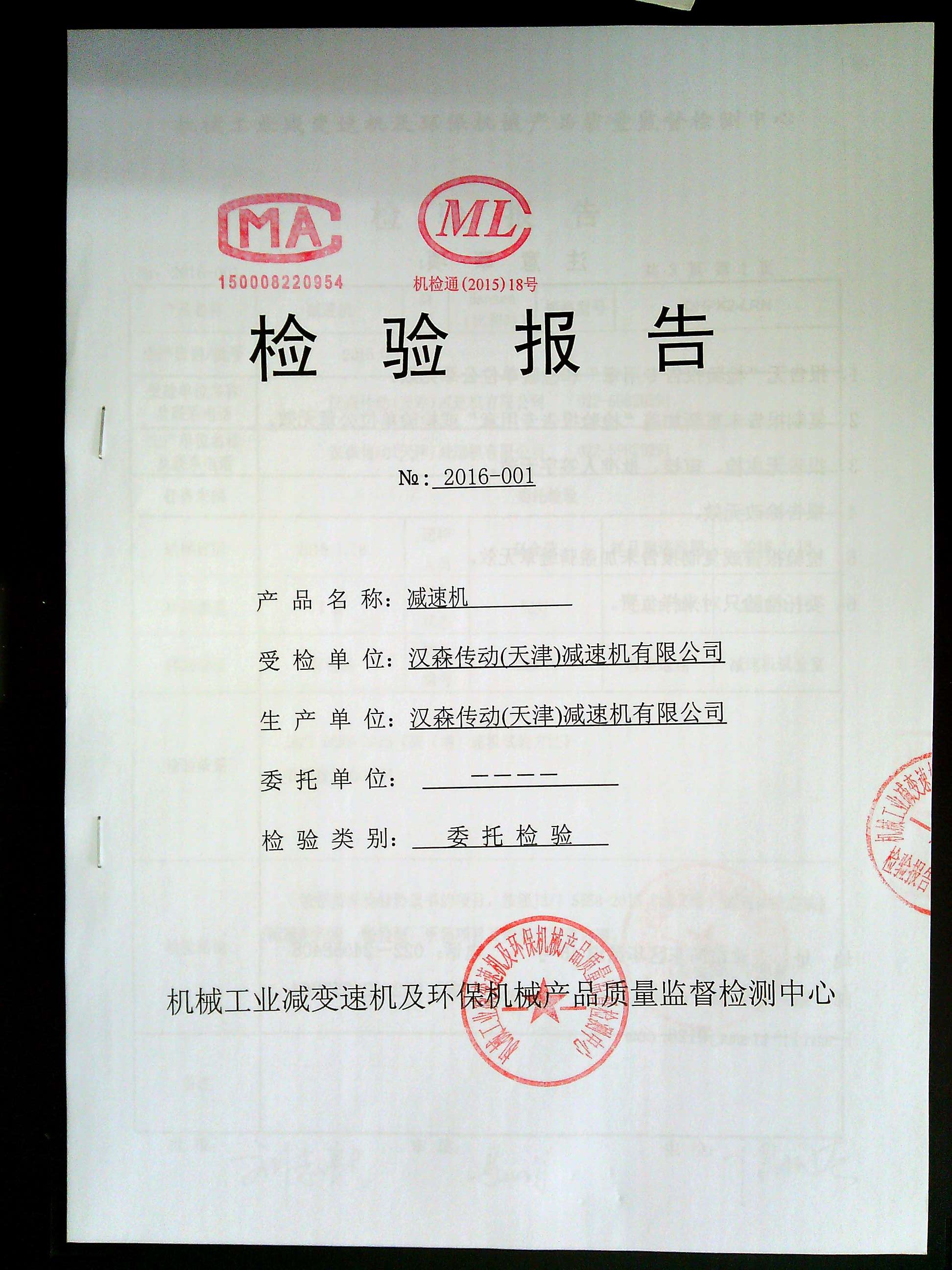 減速機(jī)檢驗(yàn)報(bào)告檢測(cè)報(bào)告